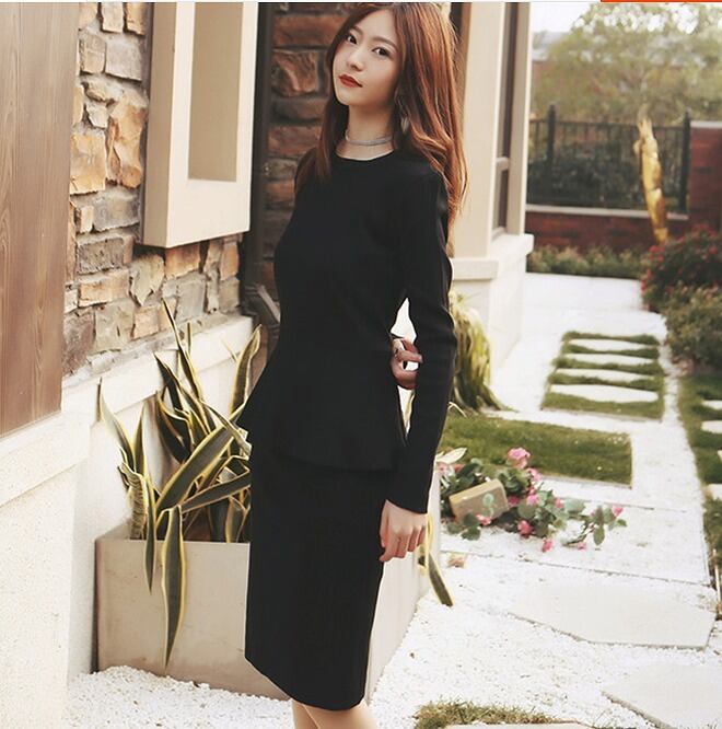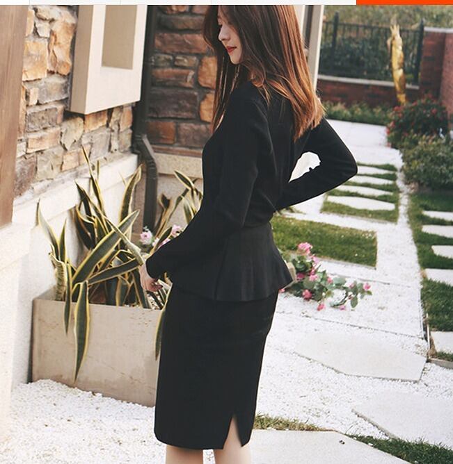 大きいサイズ レディース トップス&スカート セットアップ 上下セット 長袖 シンプル スーツ