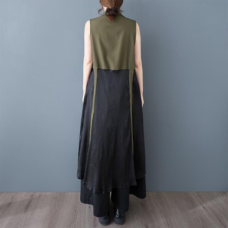 大きいサイズ ノースリーブ ワンピース レディース 春夏 カーキ 新品 ロング シャツ