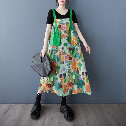 大きいサイズ サロペット グリーン レディース 春夏 新品 ワンピース
