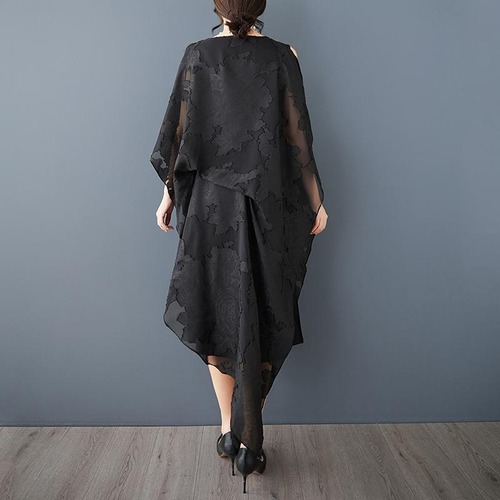 大きいサイズ ワンピース レディース 春夏 新品 イレギュラー ジャガード ホワイト ブラック 肌見せ