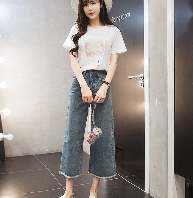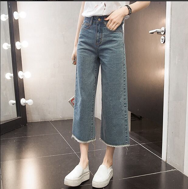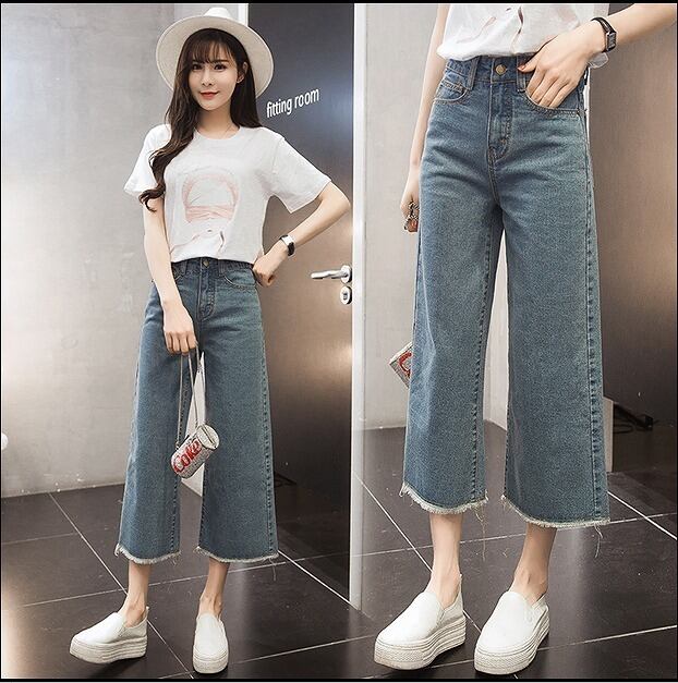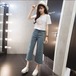 大きいサイズ レディース ワイドガウチョ ダメージ クロップドデニムパンツ