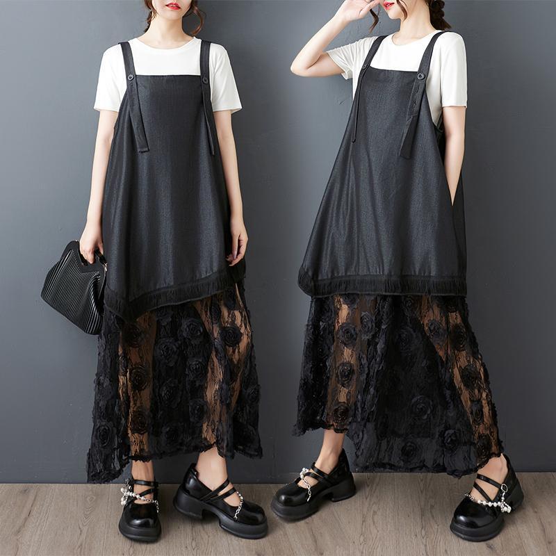大きいサイズ サロペットレディース 春夏 シアー 異素材 新品 レース ワンピース