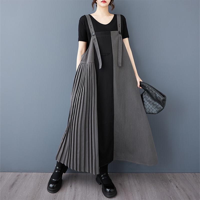 大きいサイズ プリーツ「 サロペット ワンピース レディース 春夏 新品 スカート ポケット付き