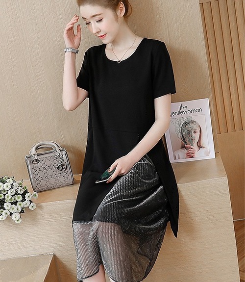 大きいサイズ レディース サイドスリットワンピース 春夏 半袖