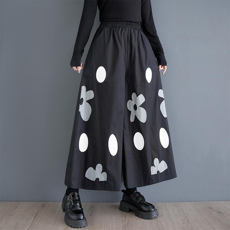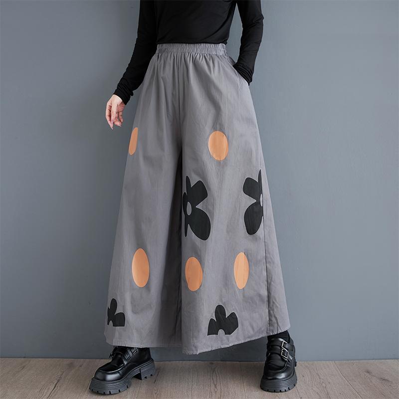 大きいサイズ モード系 パンツ レディース ワイドパンツ 春夏 新品 花柄 グレー ブラック