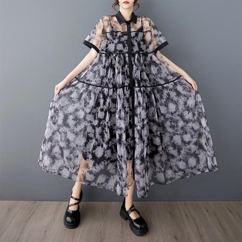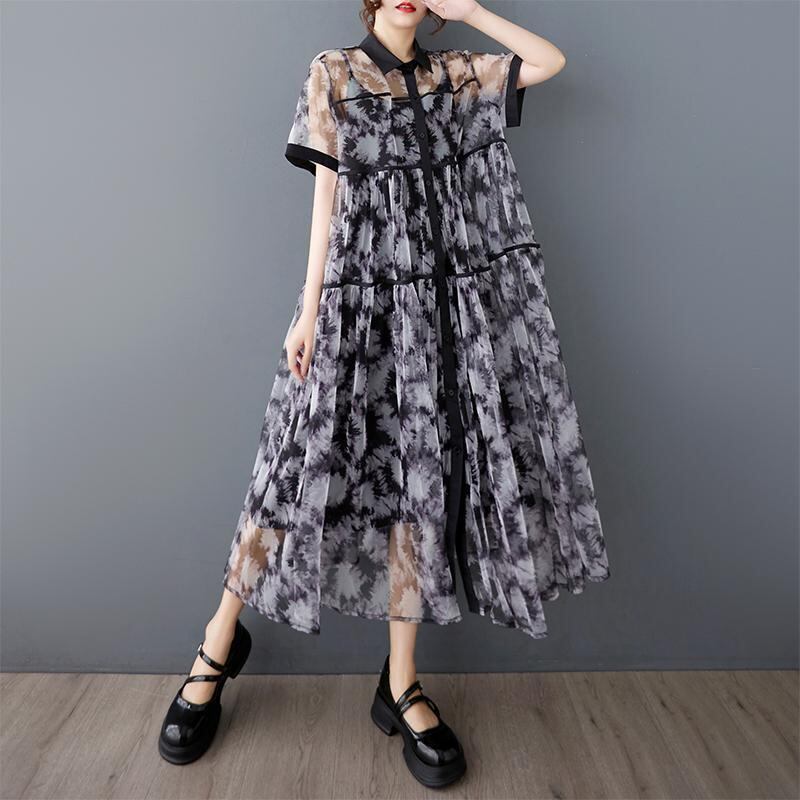 大きいサイズ シアー ワンピース シャツ レディース 春夏 新品 半袖