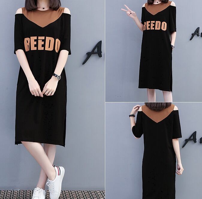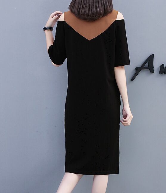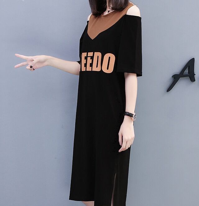 M~大きいサイズ レディース レイヤード風オープンショルダーワンピース 半袖 オフショル 重ね着風 春夏