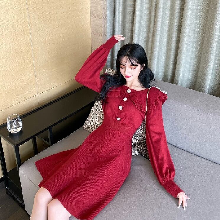 大きいサイズ レディース 襟付きワンピース 長袖 秋冬【Sc8977887】