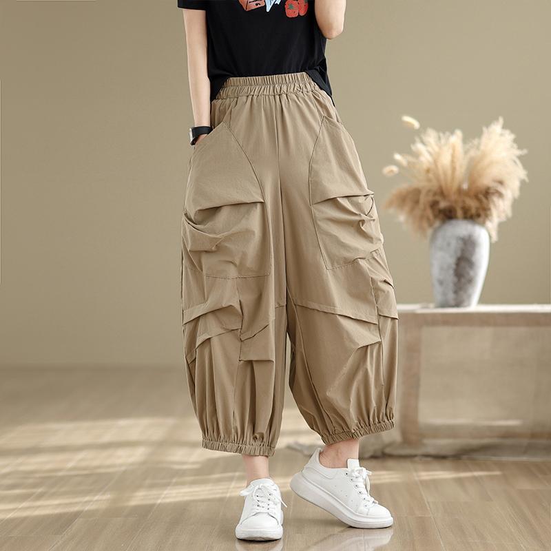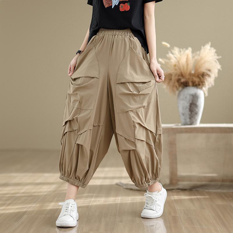 大きいサイズ パンツ カジュアル ゆったり レディース 春夏 新品 カーキ