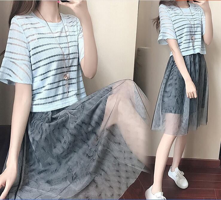 大きいサイズ レディース トップス&キャミワンピース 2点セット 重ね着 スカート 半袖 春夏