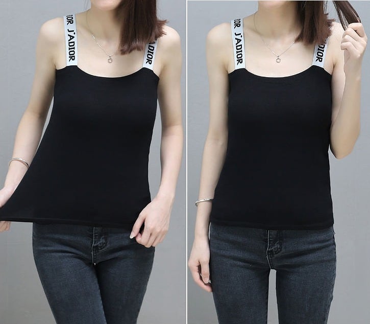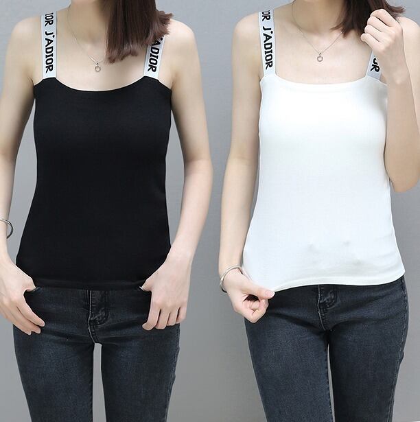 大きいサイズ レディース ロゴ入り肩紐キャミソール トップス 春夏