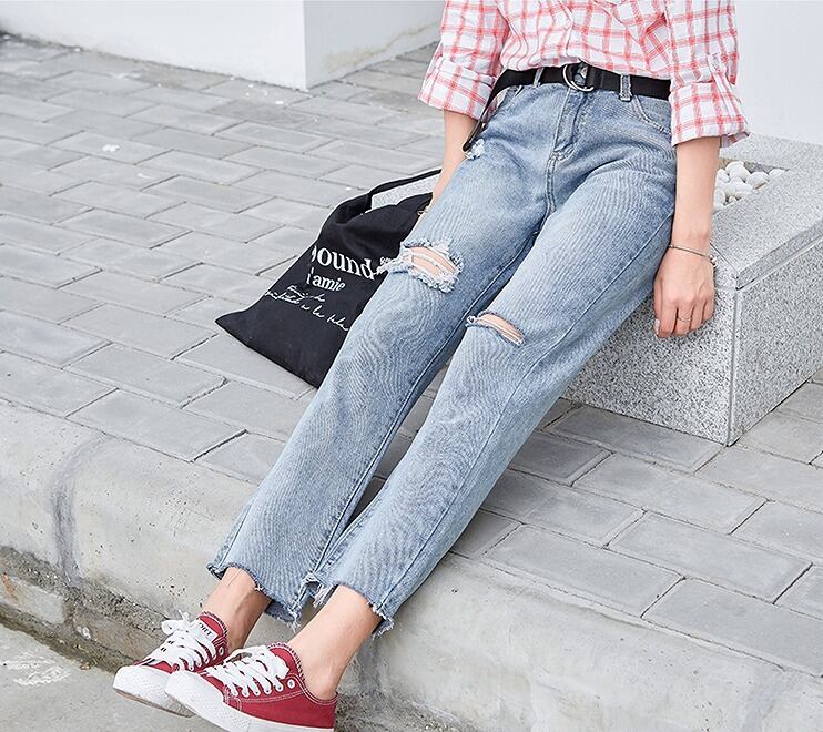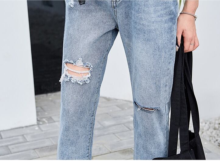 レディス マタニティ 婦人服 ゆったり 大きめ フリーサイズ 韓国 送料無料 春夏 着痩せ 新作 おおきいさいず ダメージカットオフデニムパンツ