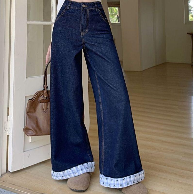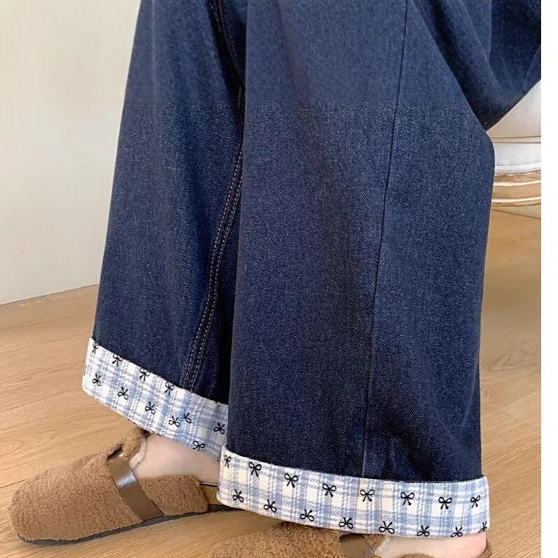 #デニムパンツ #ワイドパンツ #チェック柄 #ロールアップ #新品 #カジュアル #ゆったり #体型カバー #おしゃれ