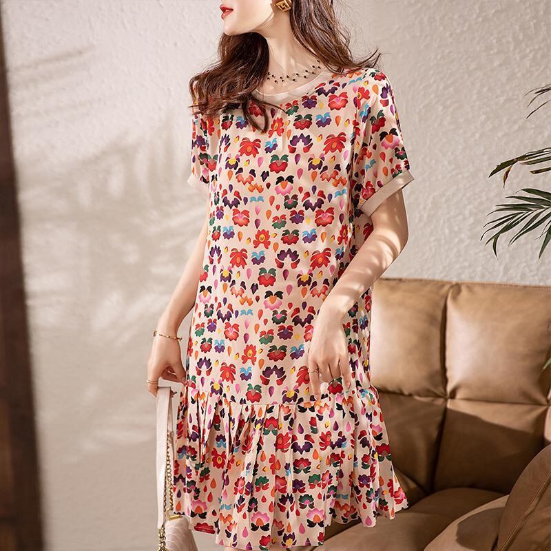 【新品】大きいサイズ夏服ワンピース花柄ゆったり半袖 ラージ体型カバー着痩せ細見え