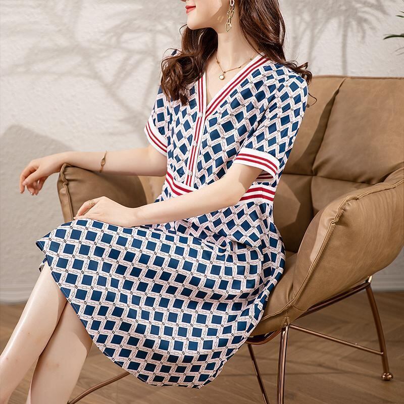 大きいサイズ夏服ゆったり半袖幾何学模様 Vネックワンピース4L ラージ