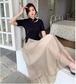 【XL】ウエスト約72-82cm 丈約59cm バスト約102cm 肩幅約38.5cm 袖丈約24cm スカート丈約83cm