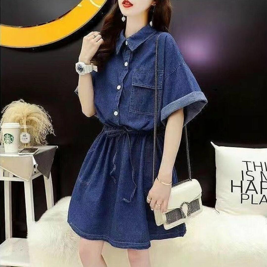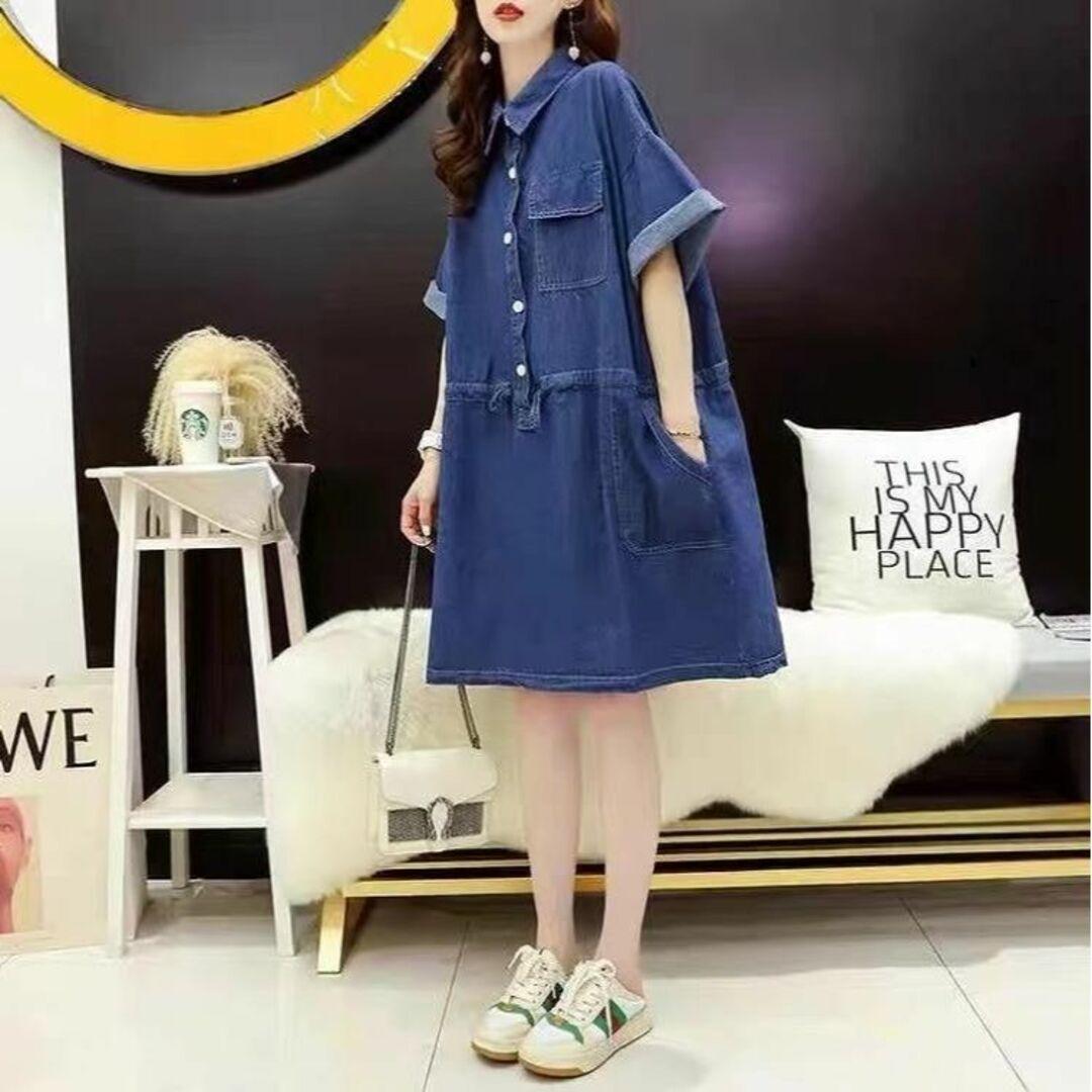 【即日発送】大きいサイズ デニム ワンピース夏服 秋 新品 半袖4L