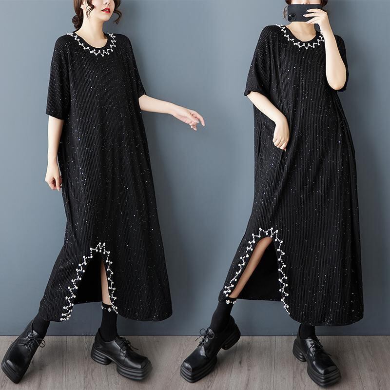 #大きいサイズ #マキシ丈ワンピース #サイドスリット #パール #体型カバー #新品 #夏服