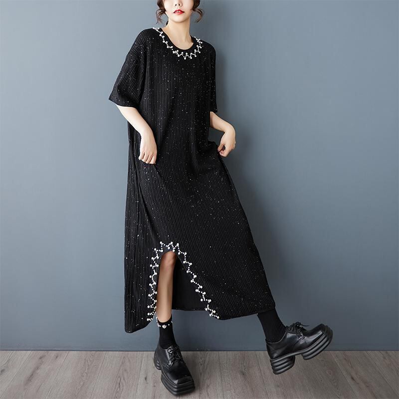 大きいサイズ 可愛いサイドスリット パール 3Lマキシ丈ワンピース 夏服