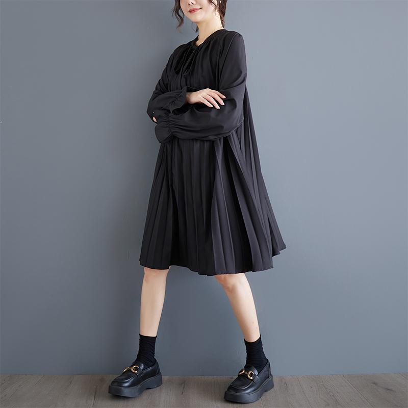 大きいサイズ夏服長袖新品4L プリーツチュニックワンピース 秋服