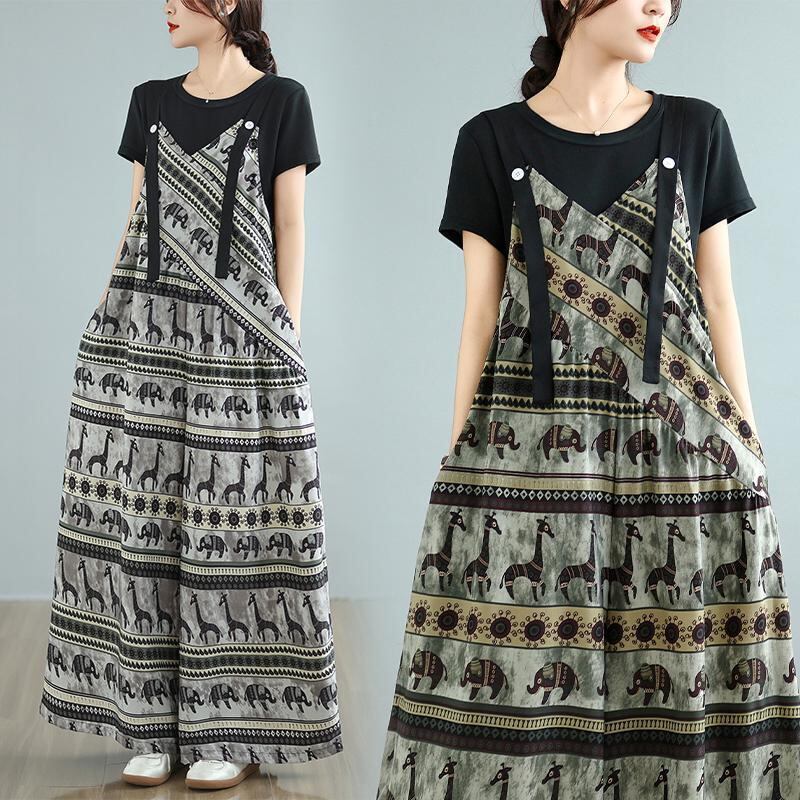 #サロペット #ワイドパンツ #オールインワン #アフリカ柄 #アニマル柄 #体型カバー #大きいサイズ #ゆったり #新品 #レディース #カジュアル #夏コーデ #4L #5L #3L