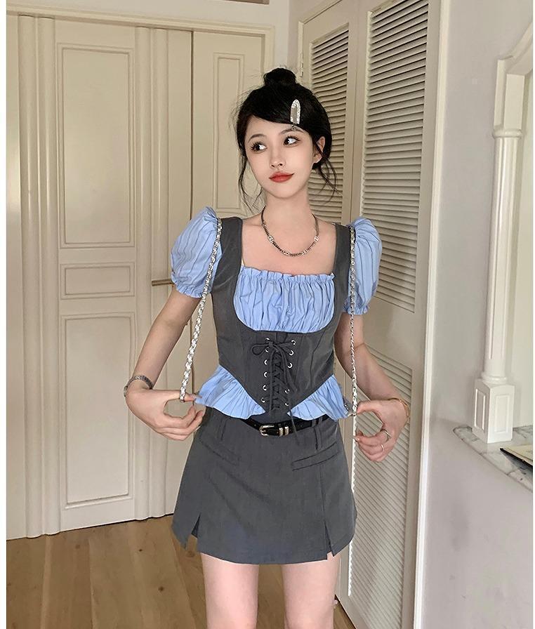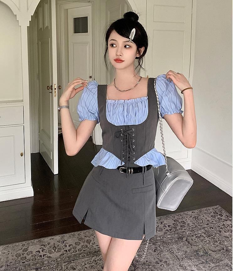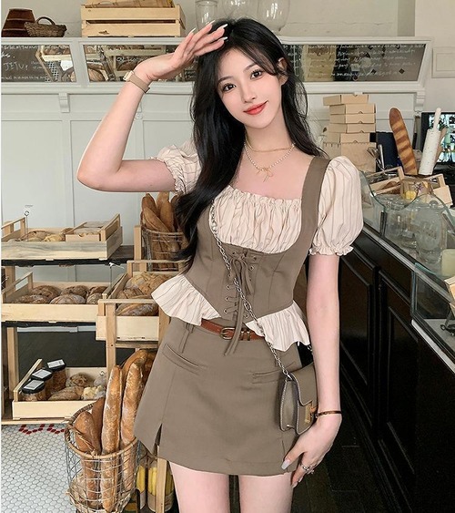 #大きいサイズ #セットアップ #韓国ファッション #ビスチェ #パフスリーブ #ミニスカート #新品 #レディース