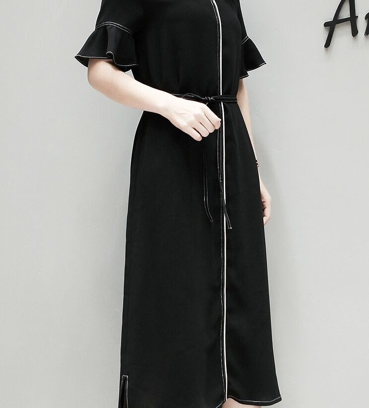 新品 送料込み 大きいサイズ 未使用 レディース大きいサイズレディース プチプラ 春物 インスタ映え フレアスリーブオープンカラーロングワンピース