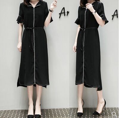 大きいサイズ レディース フレアスリーブオープンカラーロングワンピース 半袖 五分袖 春夏