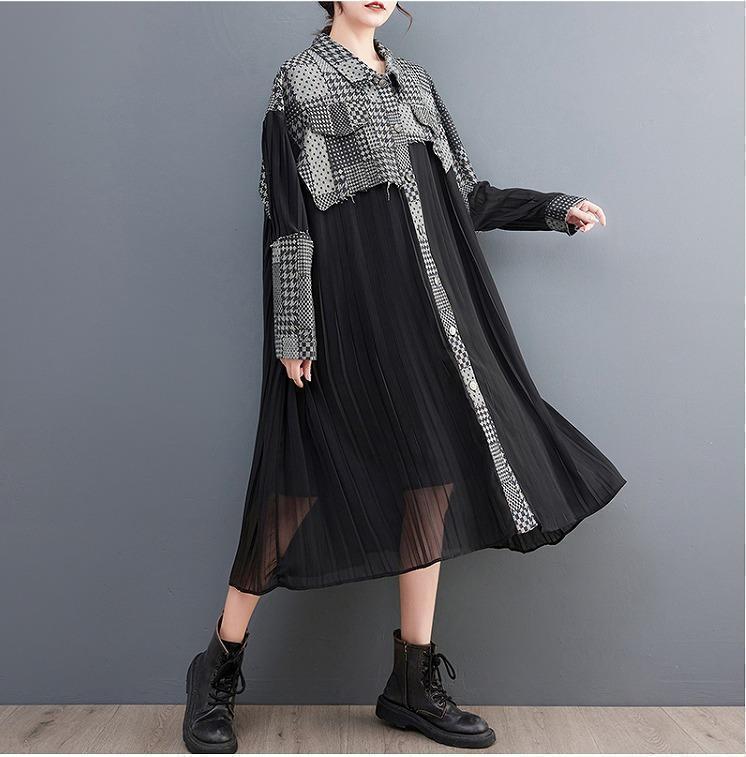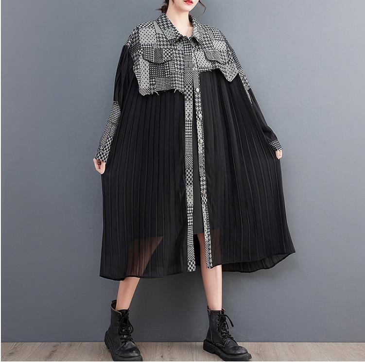 新品大きいサイズ レディース ワンピース シアー 異素材 春夏 秋 長袖