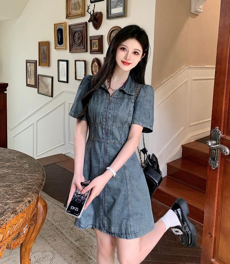 大きいサイズ レディース デニム ワンピース 春夏 秋 新品 半袖
