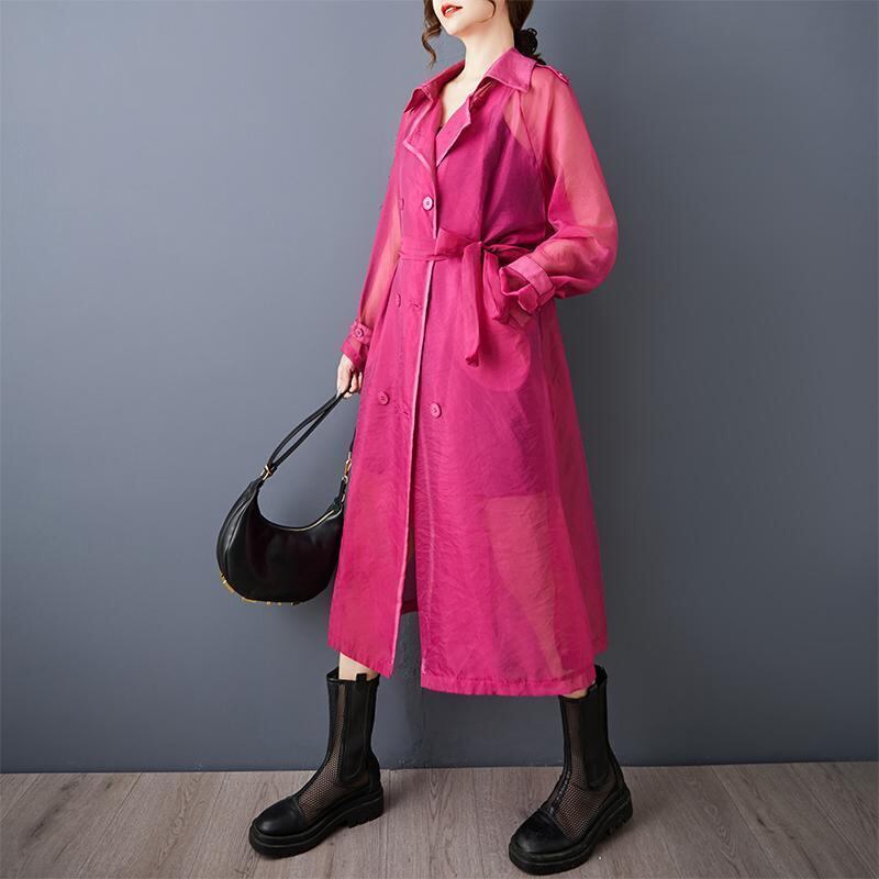 新品 大きいサイズ ゆったり シアー トレンチコート薄手羽織レッド 長袖黒夏秋