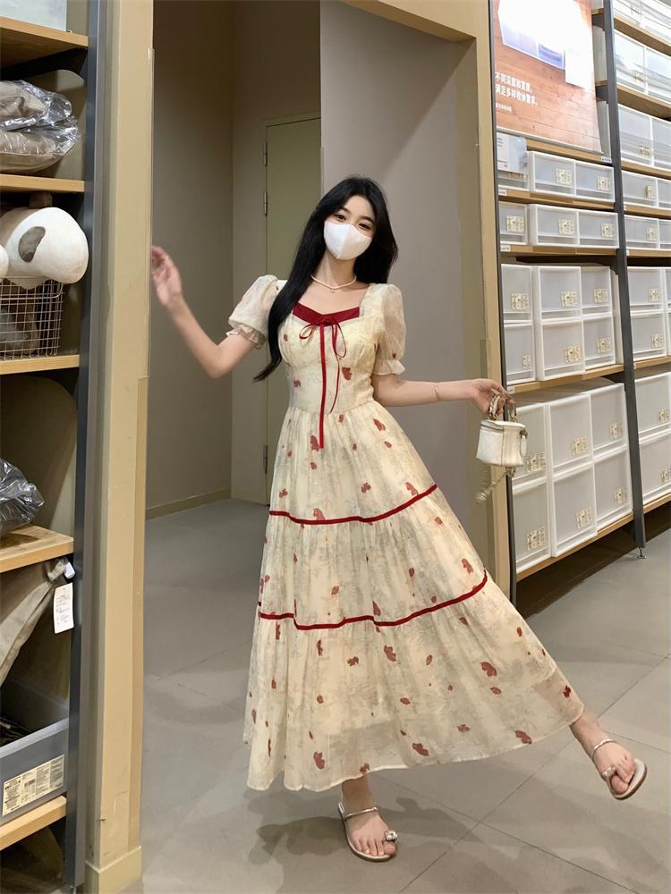 #ワンピース #ロングワンピース #大きいサイズ #花柄 #ティアードワンピース #スクエアネック #体型カバー #フリル #20代30代40代