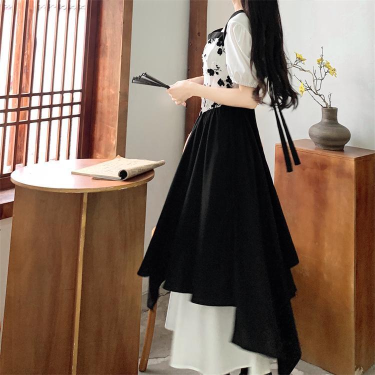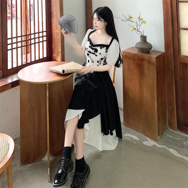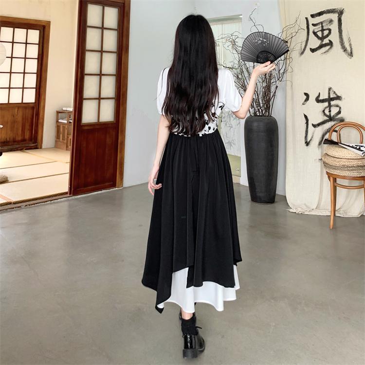白と黒のコントラストが印象的なロングワンピースです。