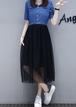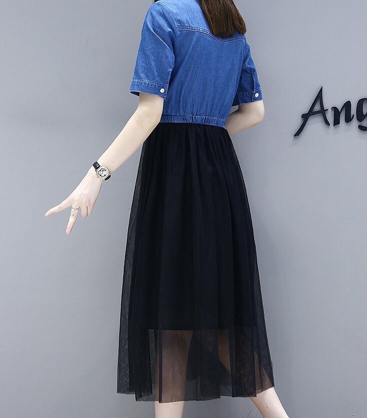 大きいサイズ レディース 異素材切替ワンピース デニム シースルー 春夏 五分袖 半袖
