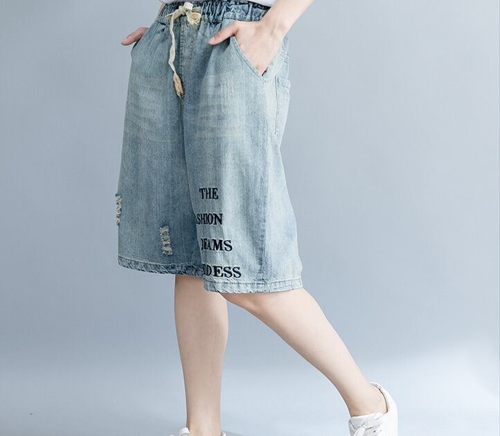 大きいサイズ レディース サルエル風デニムハーフパンツ ジーンズ 春夏 【S8870017】