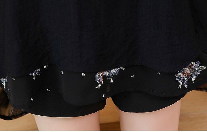 L~大きいサイズ レディース バンドカラーシフォン重ね着風トップス 半袖 五分袖 春夏 【S885887】