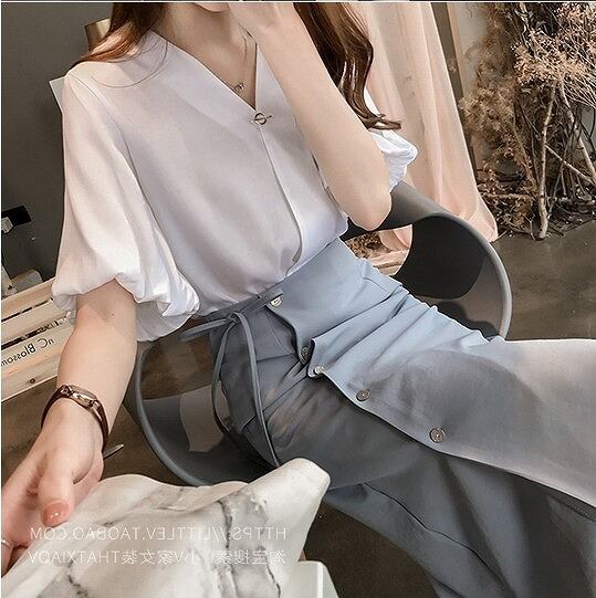 M~大きいサイズ レディース Vネックバルーンスリーブトップス 半袖 五分袖 春夏 【S8877097】