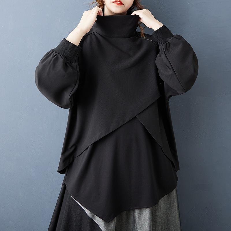 大きいサイズ 新品 トレーナー 黒 長袖 個性的 重ね着風 ゆったり トップス 秋冬