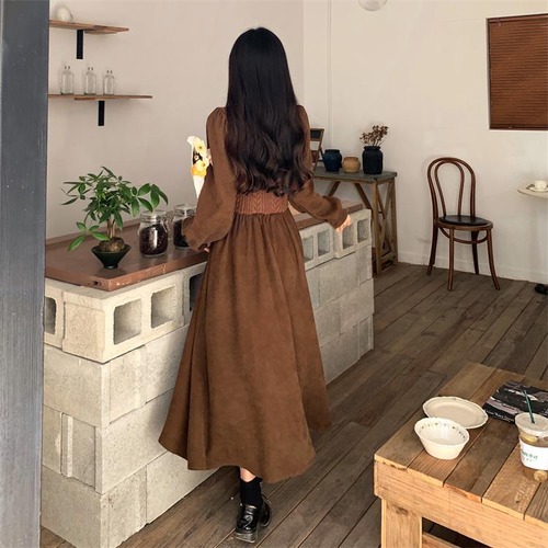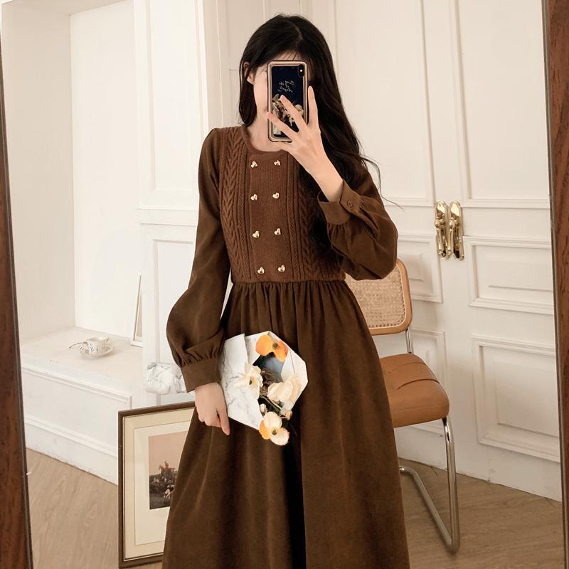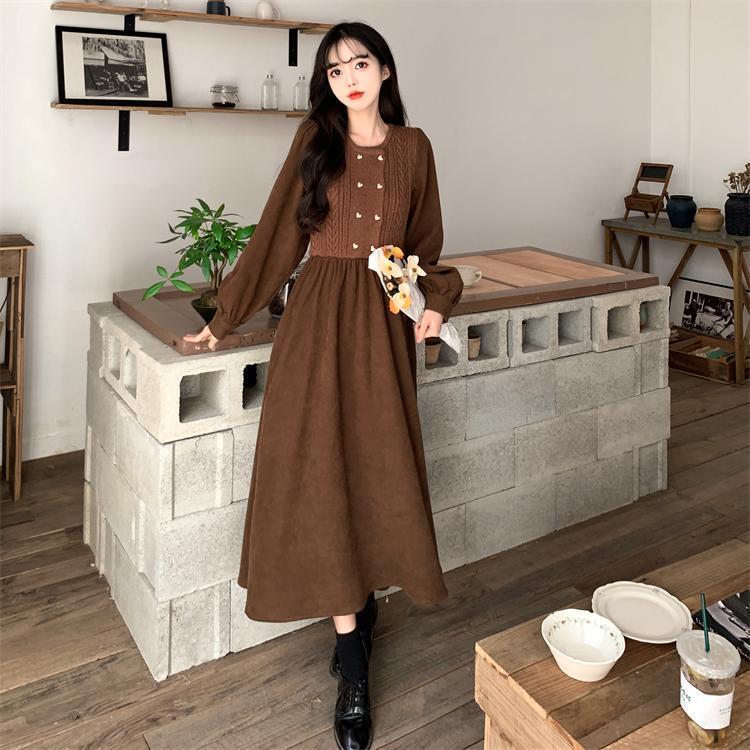 新品 大きいサイズ4L前後 Aラインワンピース ロング丈ハートボタン 秋冬茶