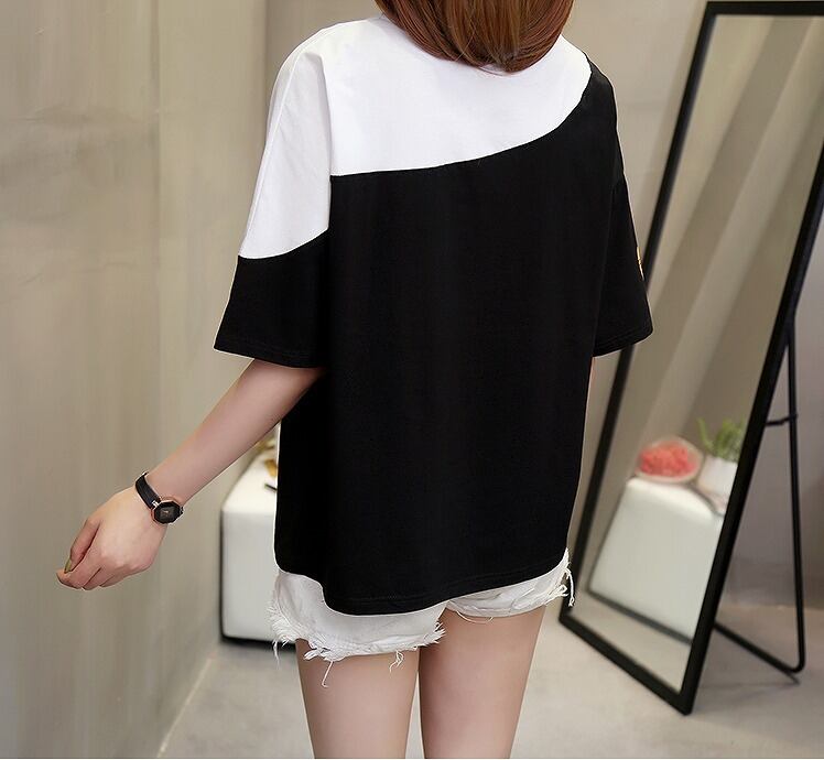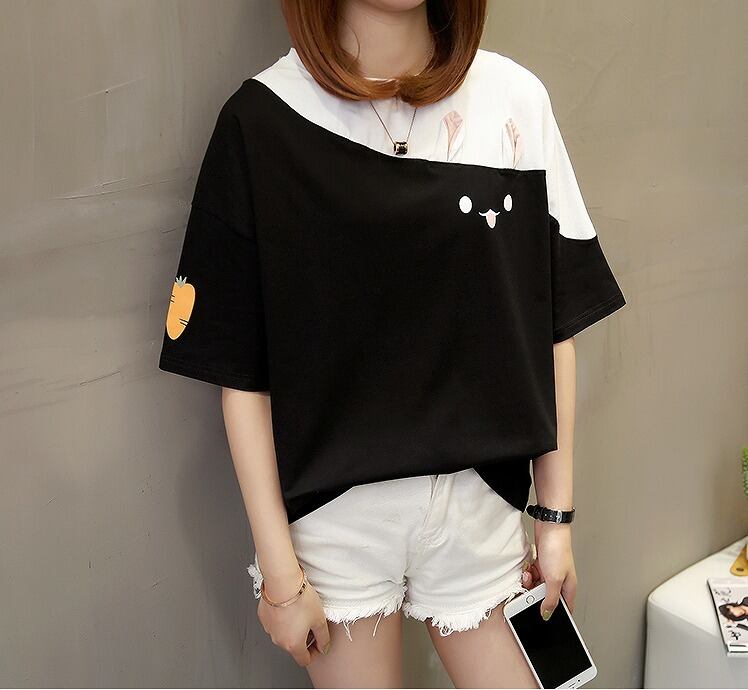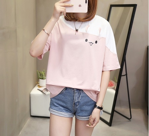 M~大きいサイズ レディース ラビット柄切替Tシャツ トップス 半袖 五分袖 春夏 【S8865007】
