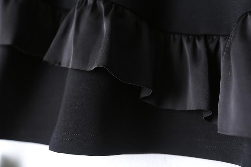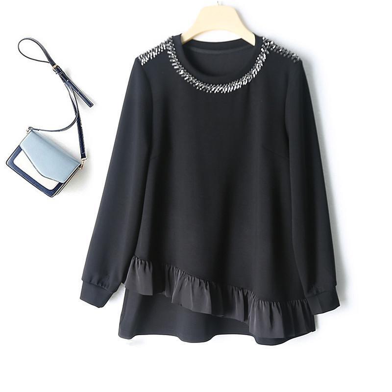 新品大きいサイズ 4LビジューTシャツ ロンT カットソー 秋冬 チュニック ゆったり フリル レイヤード風 着痩せ 黒
