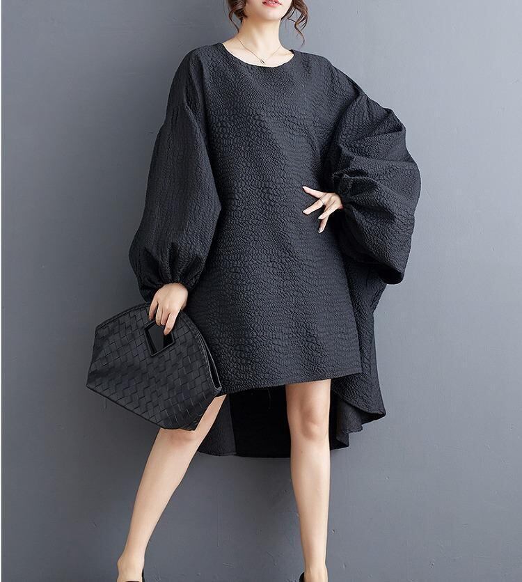 #大きいサイズ #ワンピース #チュニック #秋冬 #体型カバー #新品 #ゆったり #ランタンスリーブ #コクーンシルエット #黒