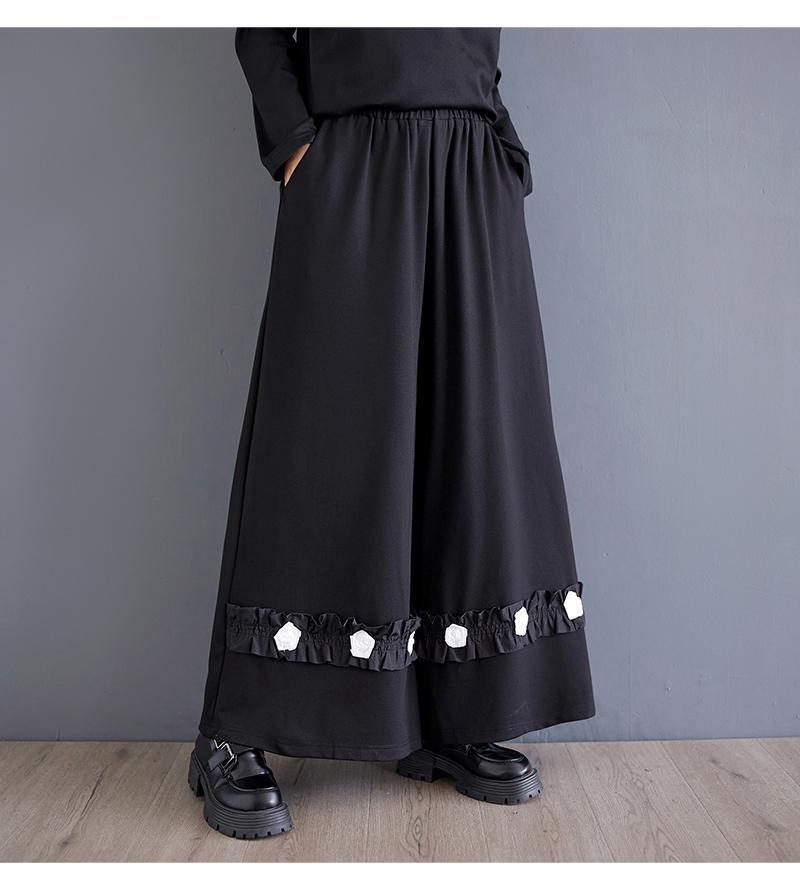 新品 大きいサイズ4L セットアップ 秋冬黒レトロ ゆったり ワイドパンツ