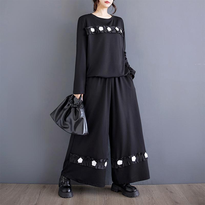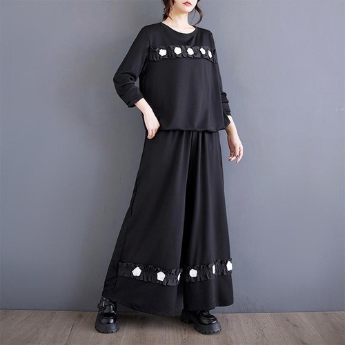 #新品 #大きいサイズ #セットアップ #秋服 #レトロ #ワイドパンツ #ゆったり #黒 #体型カバー #モード