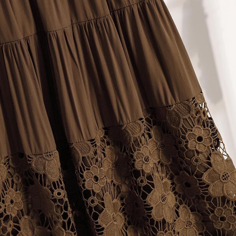 大きいサイズ 新品 秋冬 レース ティアード スカート 茶 レース 4L ミモレ丈