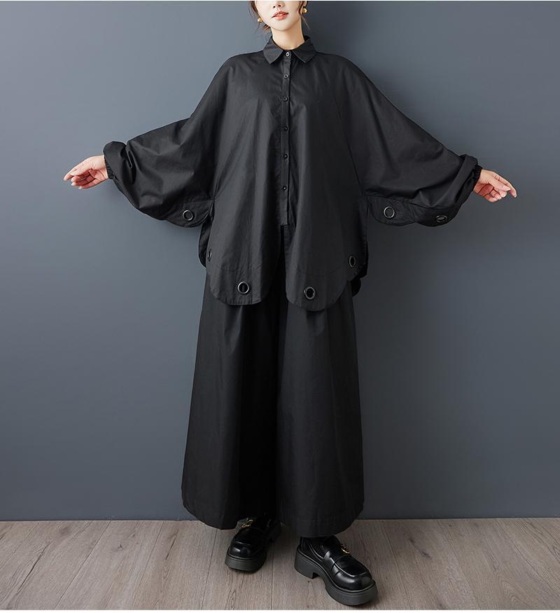 袖に立体的な装飾(フリルやタックのようなデザイン)が施された、ニッチで個性的な長袖トップスです。ゆったりとしたバットウィングスリーブ(ドルマンスリーブ)とルーズなバージョン分類で、気になる体型をカバーしつつ、ゆったりとカジュアルにお洒落を楽しめます。