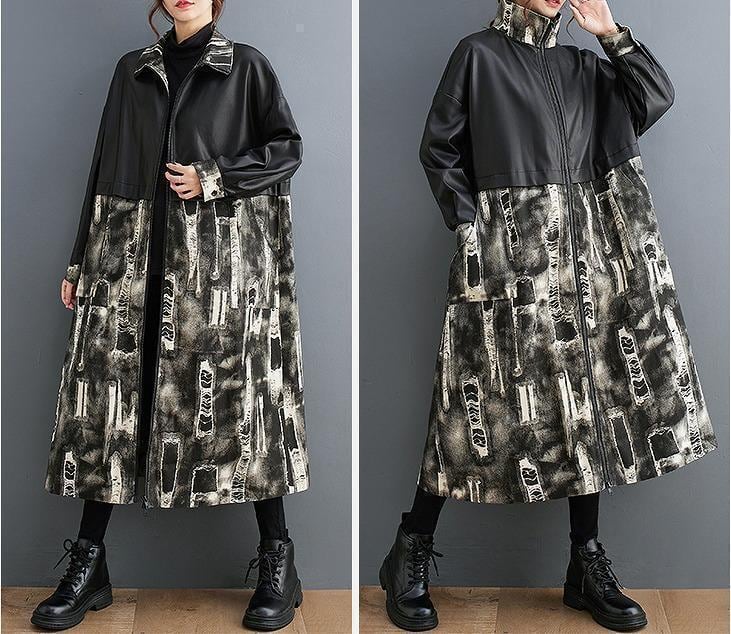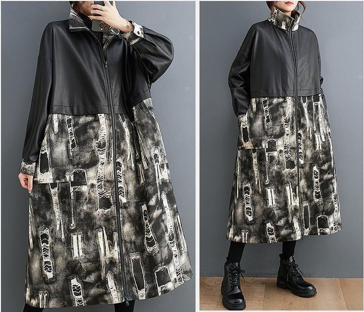 大きいサイズ 新品 秋 PUレザー 切替 ゆったり ロング ブルゾン 黒 ドルマン