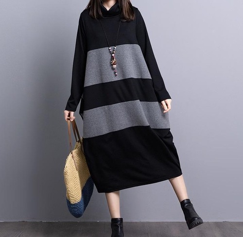 #大きいサイズ #新品 #ワンピース #ニットワンピース #コクーン #ハイネック #秋冬 #ゆったり #韓国ファッション #黒 #グレー