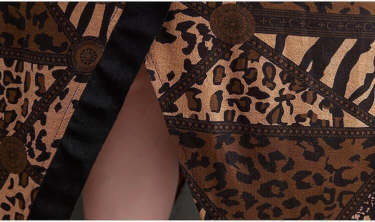 スタンドカラーと長袖で、秋の通勤やちょっとしたお出かけに最適です。不規則なスカートタイプと、立体的な装飾がデザインのアクセントになっています。