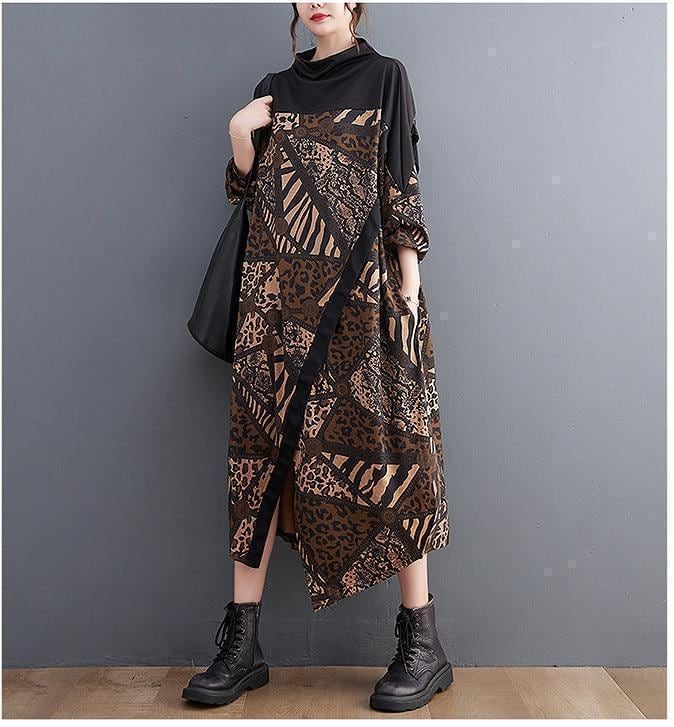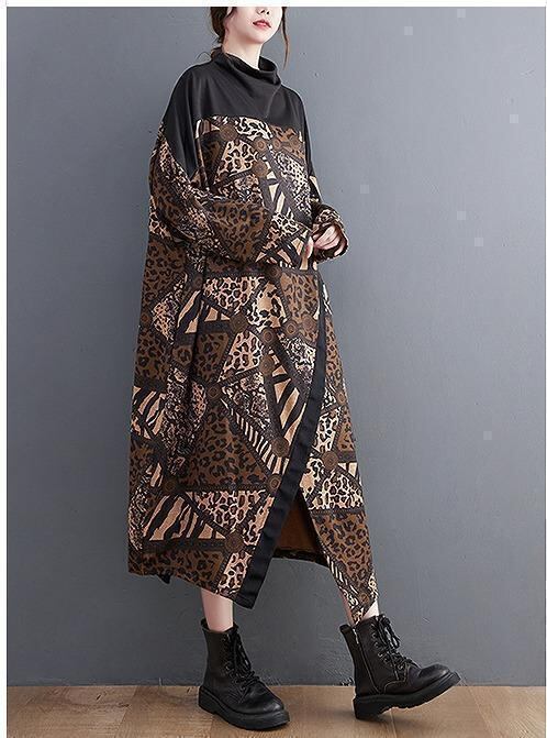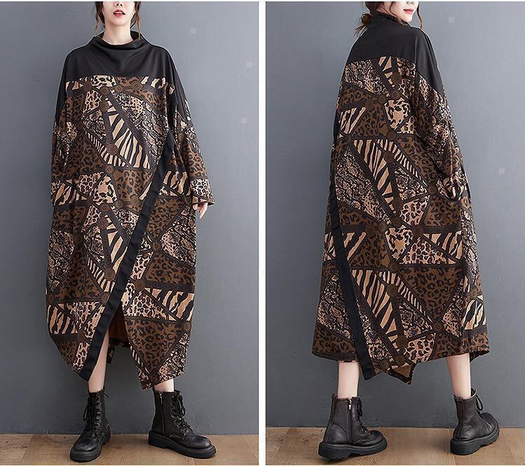 大きいサイズ 新品 秋冬 千鳥格子柄 ゆったり ロングワンピース O型シルエット